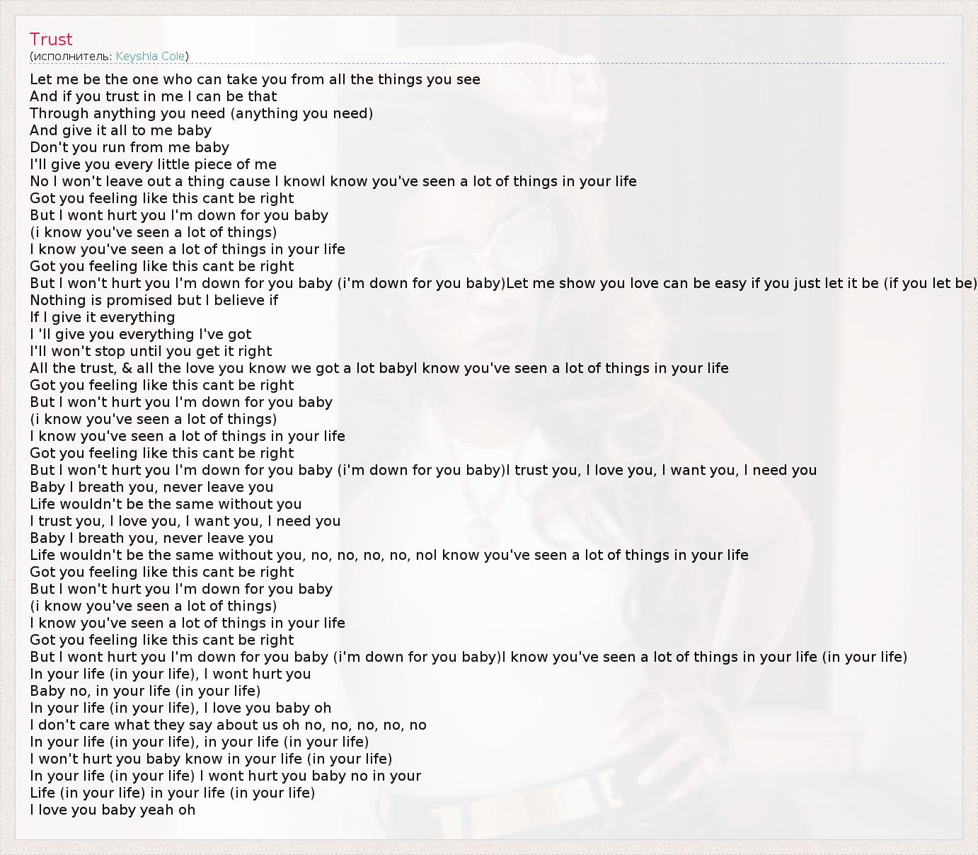 All the trust, & all the love you know we got a lot babyI know you've seen a lot of things in your life