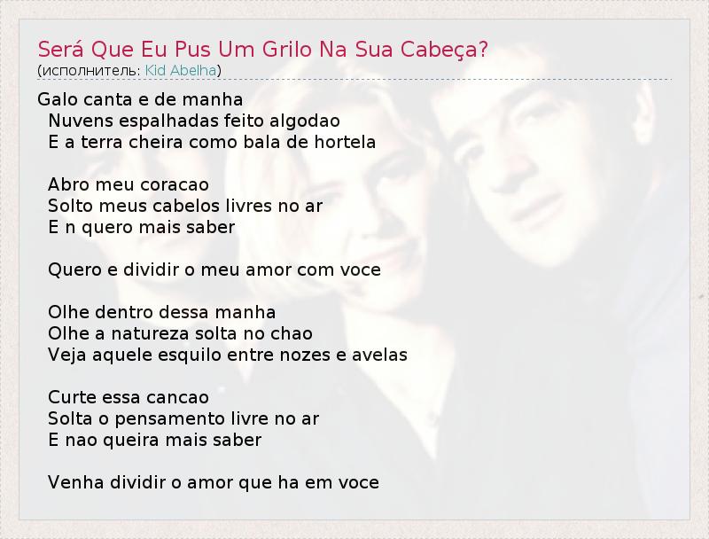ГлавнаяИсполнителиKid AbelhaSerá Que Eu Pus Um Grilo Na Sua Cabeça?