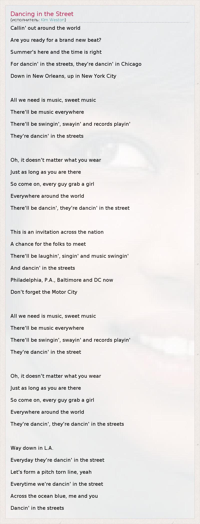 А как ты думаешь, о чем песня "Dancing in the Street" ?