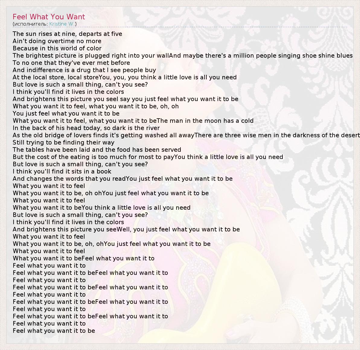 А как ты думаешь, о чем песня "Feel What You Want" ?