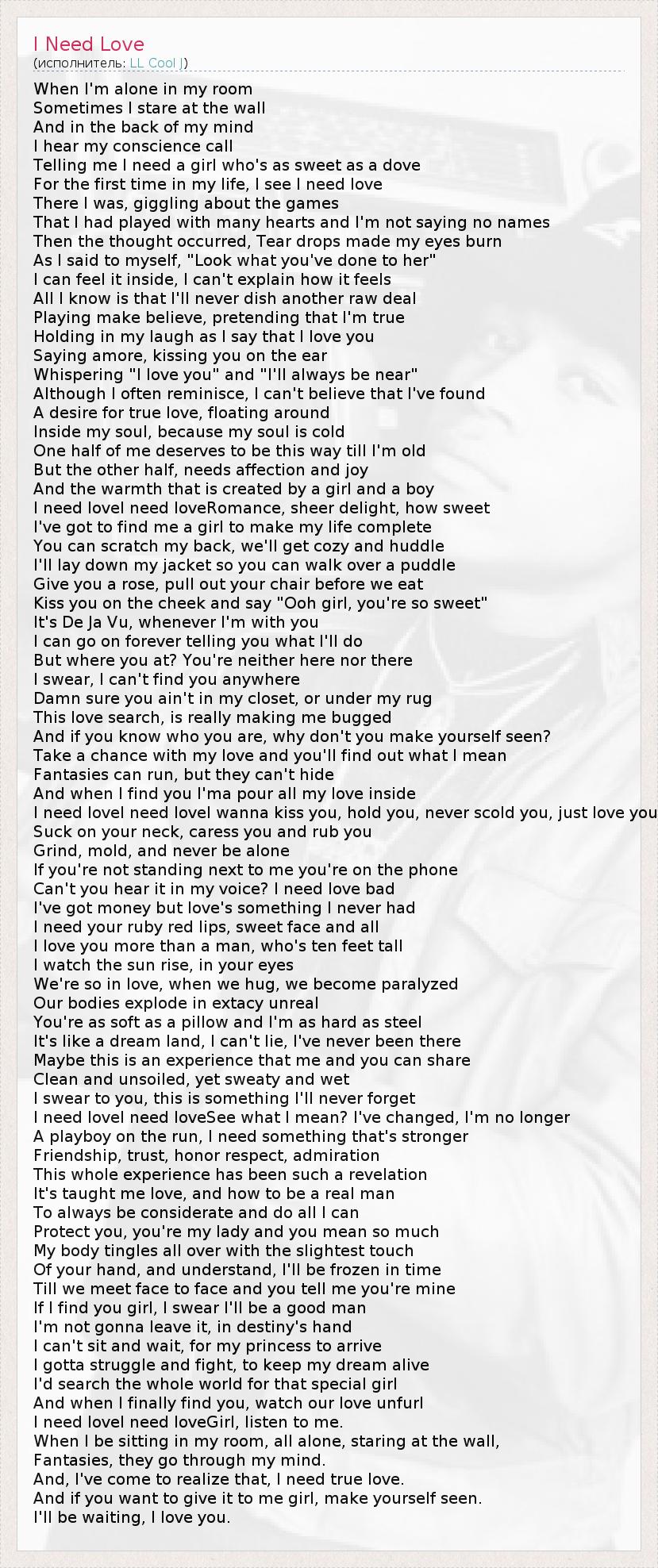 I need loveI need loveSee what I mean? I've changed, I'm no longer