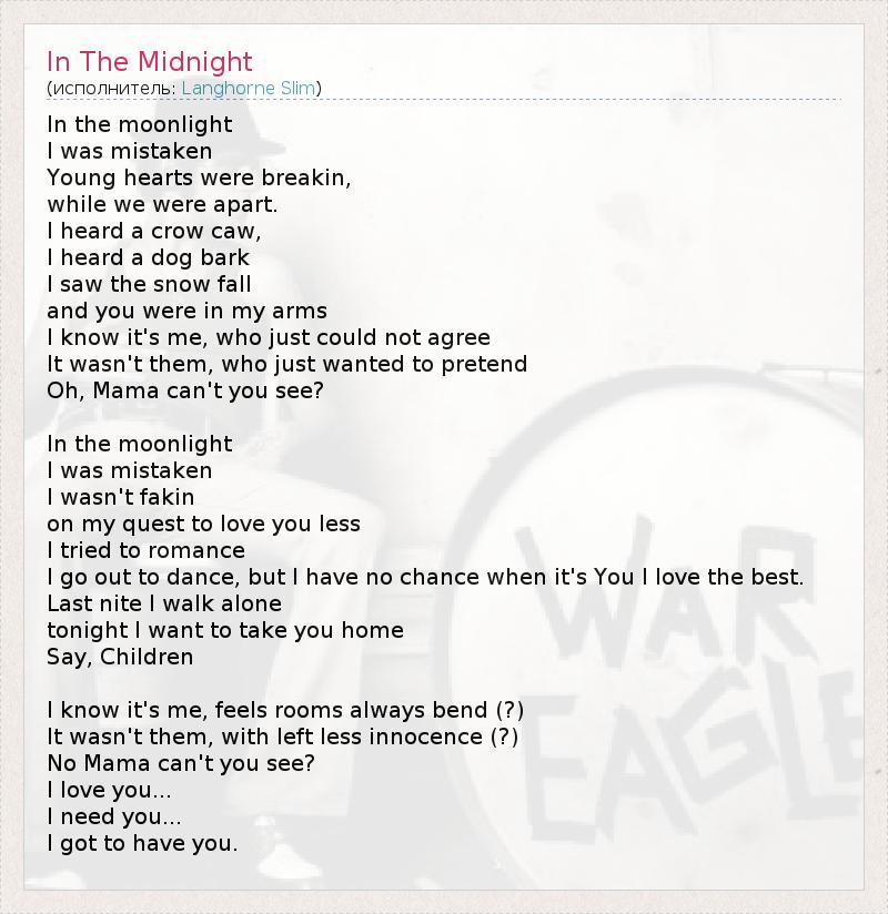 А как ты думаешь, о чем песня "In The Midnight" ?