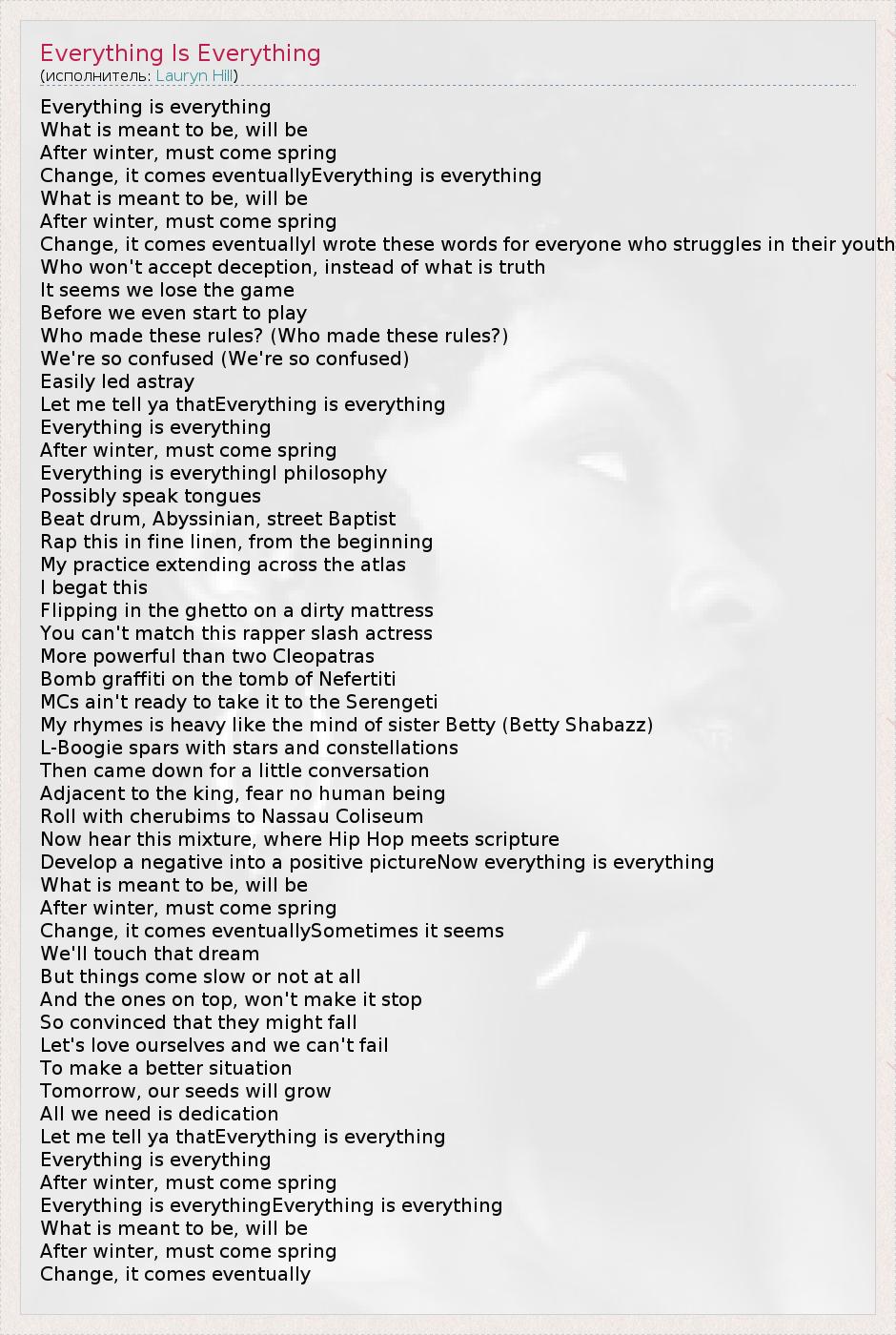А как ты думаешь, о чем песня "Everything Is Everything" ?