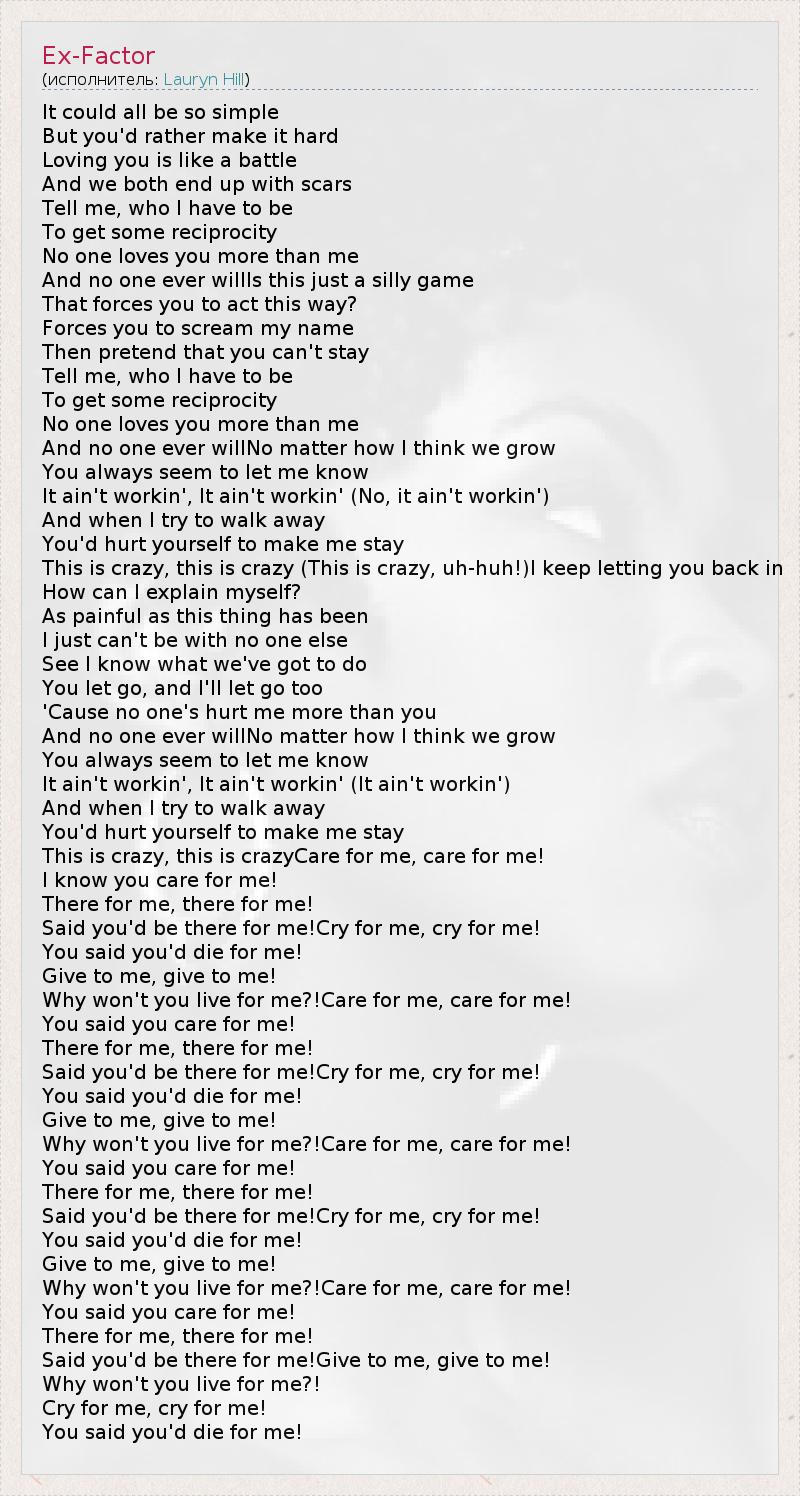 А как ты думаешь, о чем песня "Ex-Factor" ?