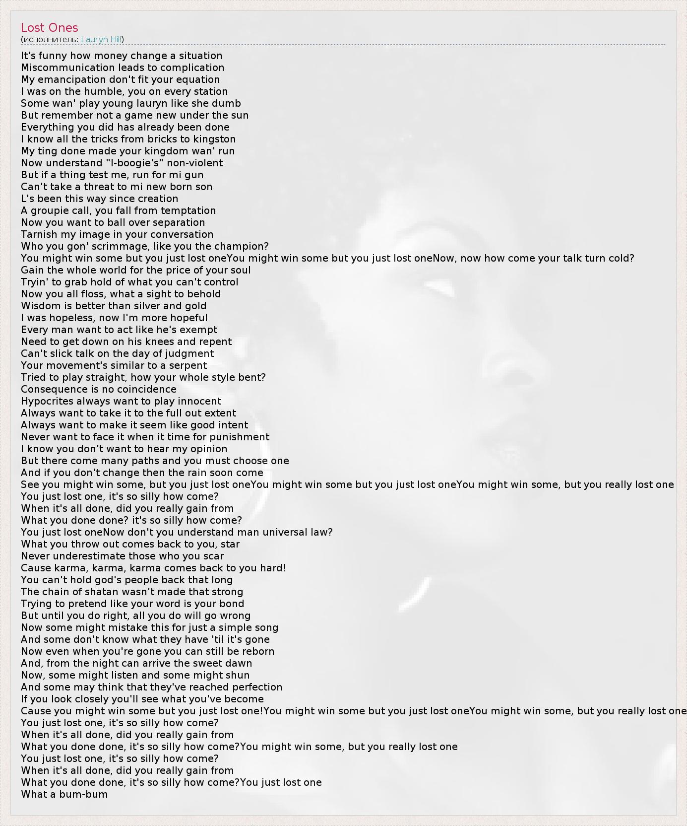 А как ты думаешь, о чем песня "Lost Ones" ?