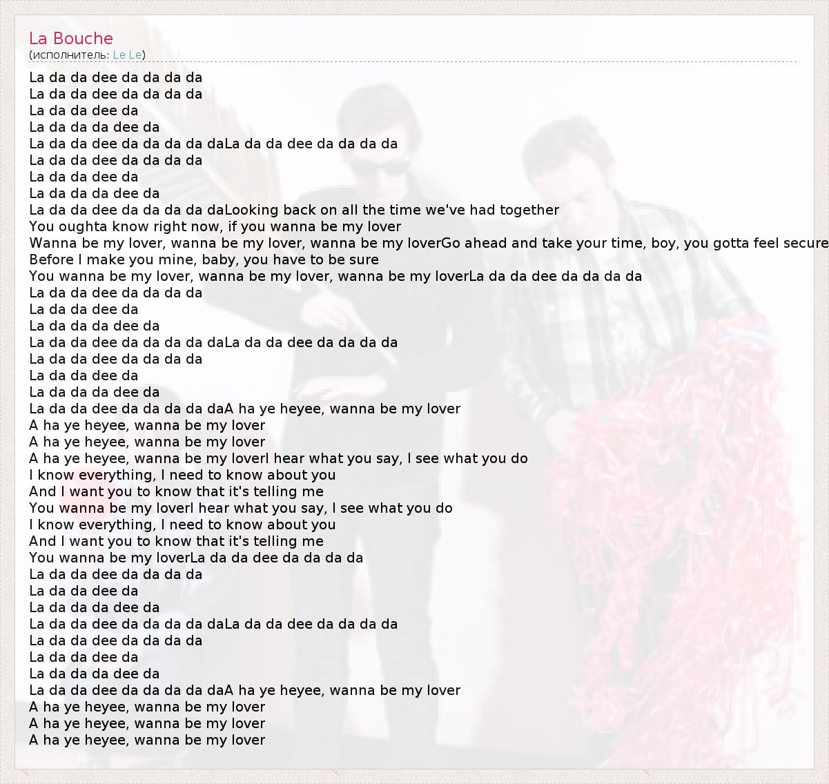 La da da dee da da da da daA ha ye heyee, wanna be my lover