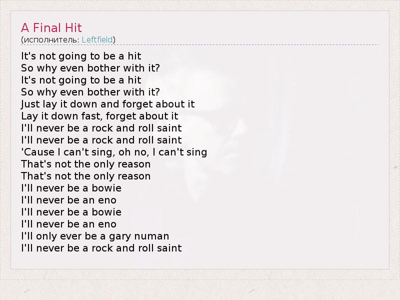 А как ты думаешь, о чем песня "A Final Hit" ?