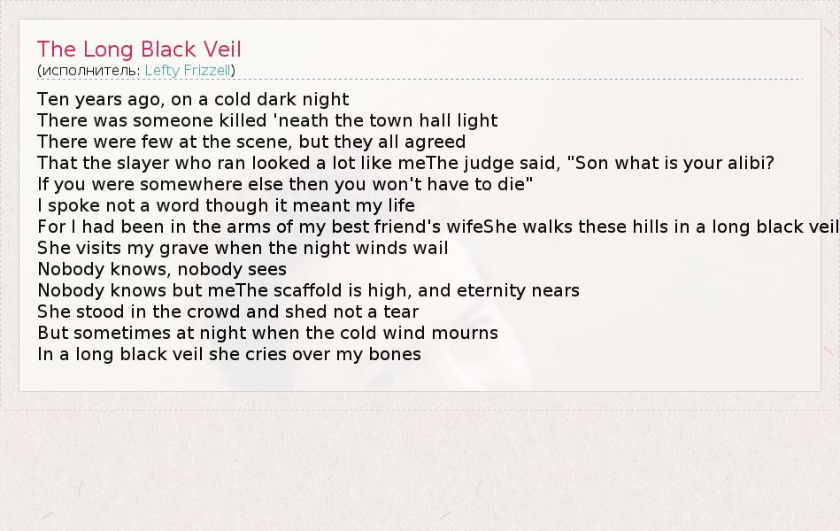 А как ты думаешь, о чем песня "The Long Black Veil" ?