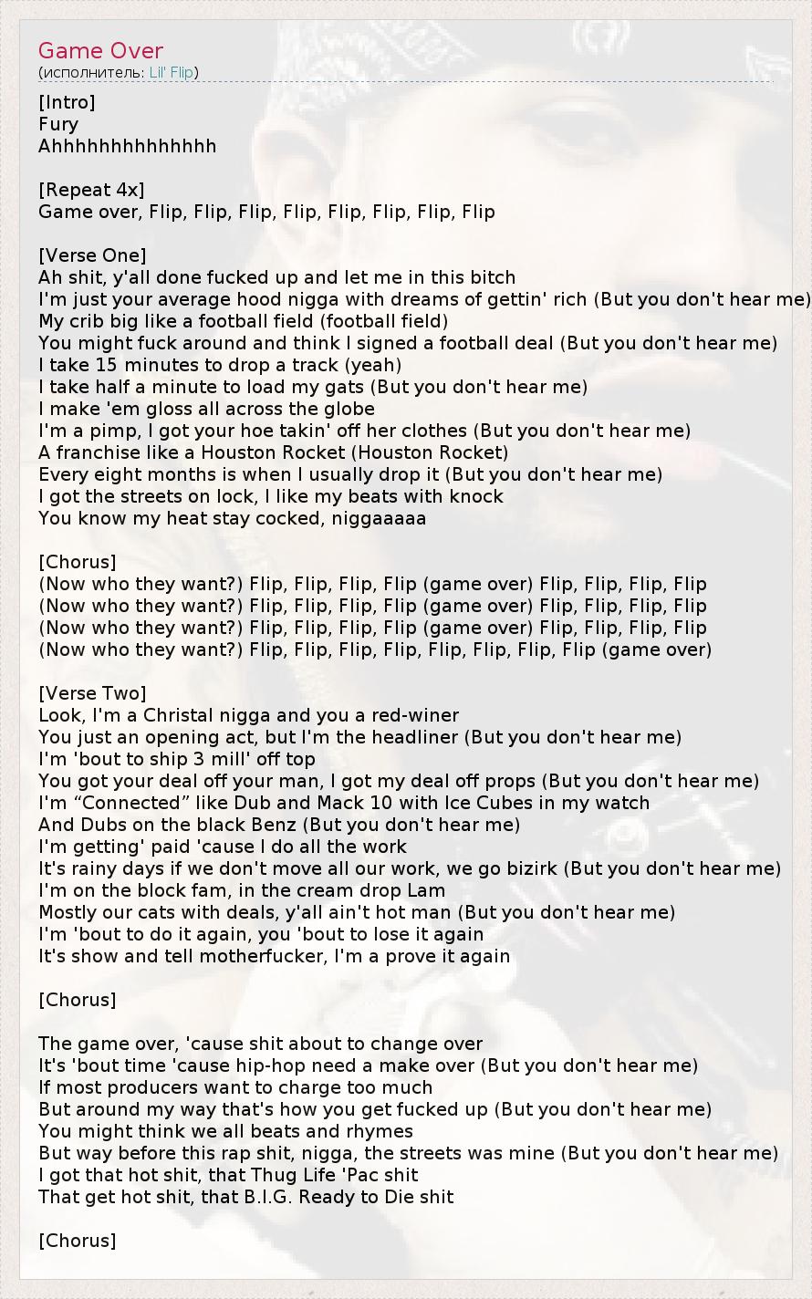 (Now who they want?) Flip, Flip, Flip, Flip (game over) Flip, Flip, Flip, Flip