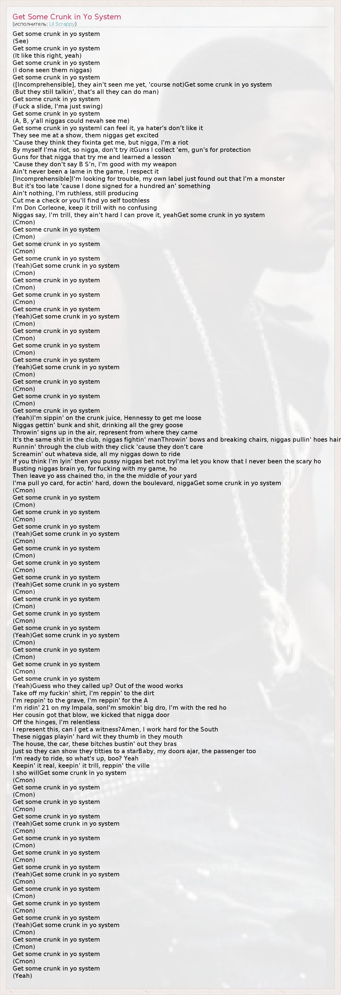 ГлавнаяИсполнителиLil ScrappyGet Some Crunk in Yo System