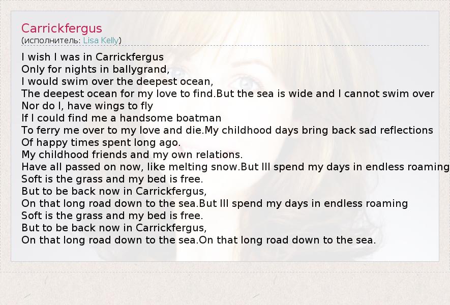 А как ты думаешь, о чем песня "Carrickfergus" ?