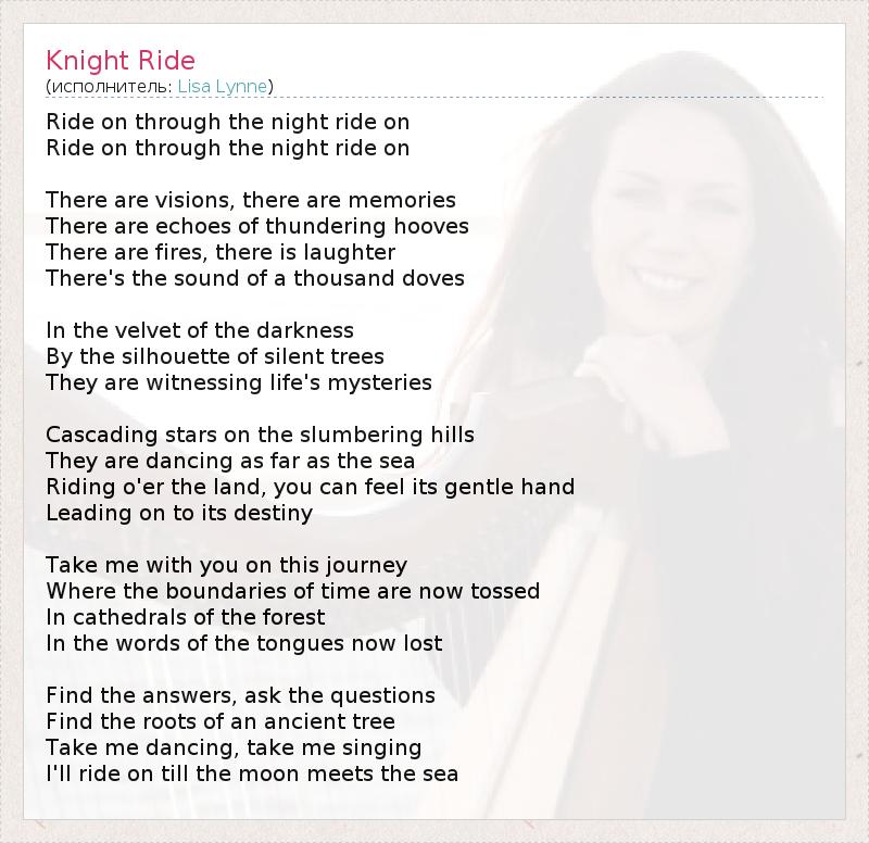 А как ты думаешь, о чем песня "Knight Ride" ?