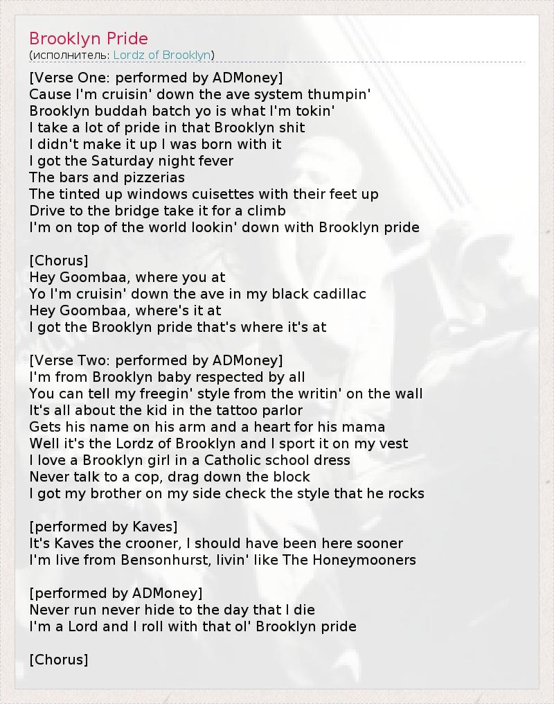 А как ты думаешь, о чем песня "Brooklyn Pride" ?