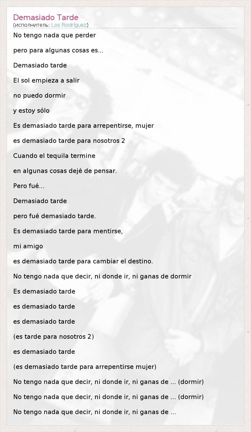 А как ты думаешь, о чем песня "Demasiado Tarde" ?