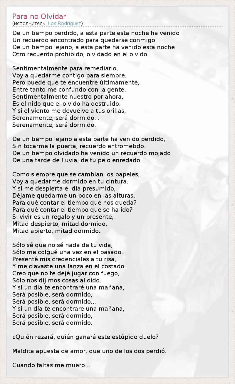 А как ты думаешь, о чем песня "Para no Olvidar" ?