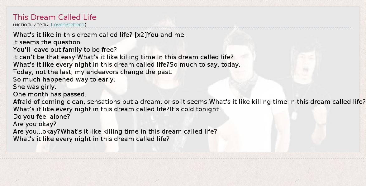 А как ты думаешь, о чем песня "This Dream Called Life" ?