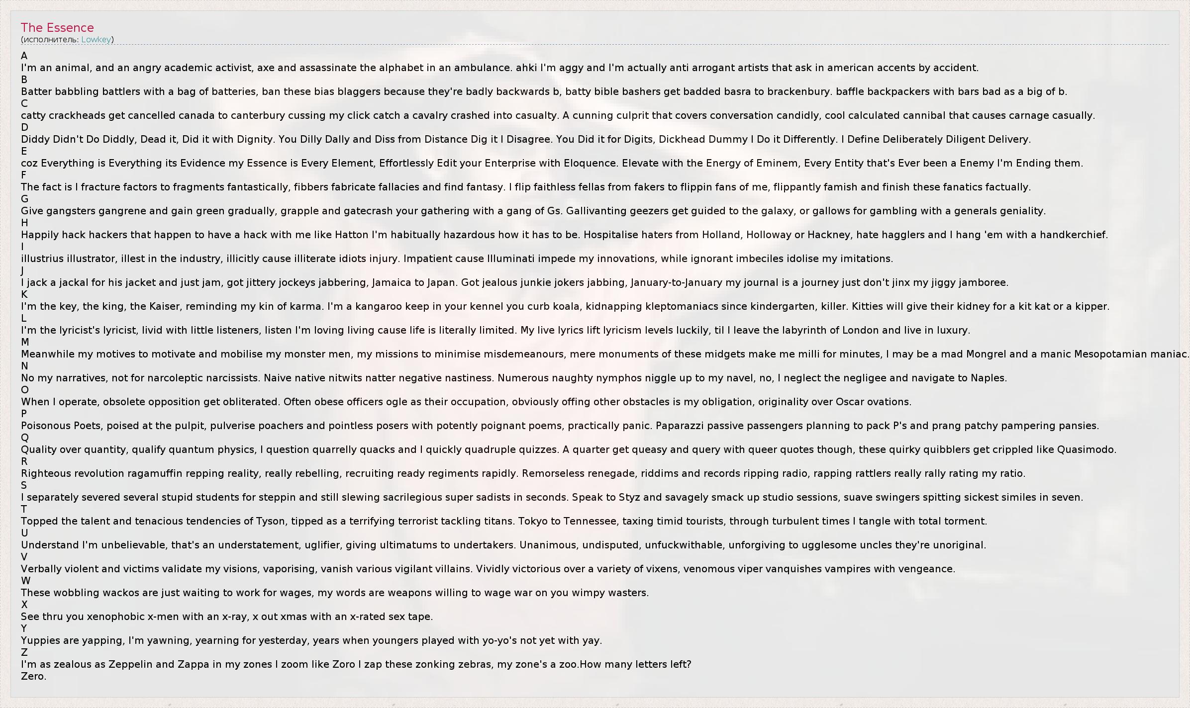 Это интересно:Лоукей родился в 1986 году в Тутинге (район южного Лондона). Его отец был уроженцем Дувра, а мать - арабкой. Впервые о нем услышали на одном из вечеров открытого микрофона, когда он сразился с другим МС, с созвучным именем Локи. Аудитория и другие музыканты признали победителем Лоукея. Тогда ему было 17 лет.Сейчас у него много наград как у лучшего хип-хоп исполнителя по версиям таких радиостанций,... продолжение