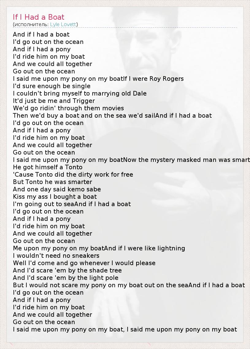 А как ты думаешь, о чем песня "If I Had a Boat" ?