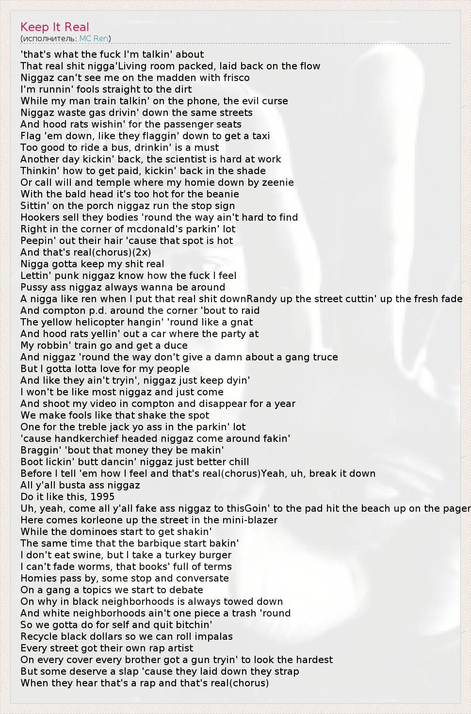 А как ты думаешь, о чем песня "Keep It Real" ?