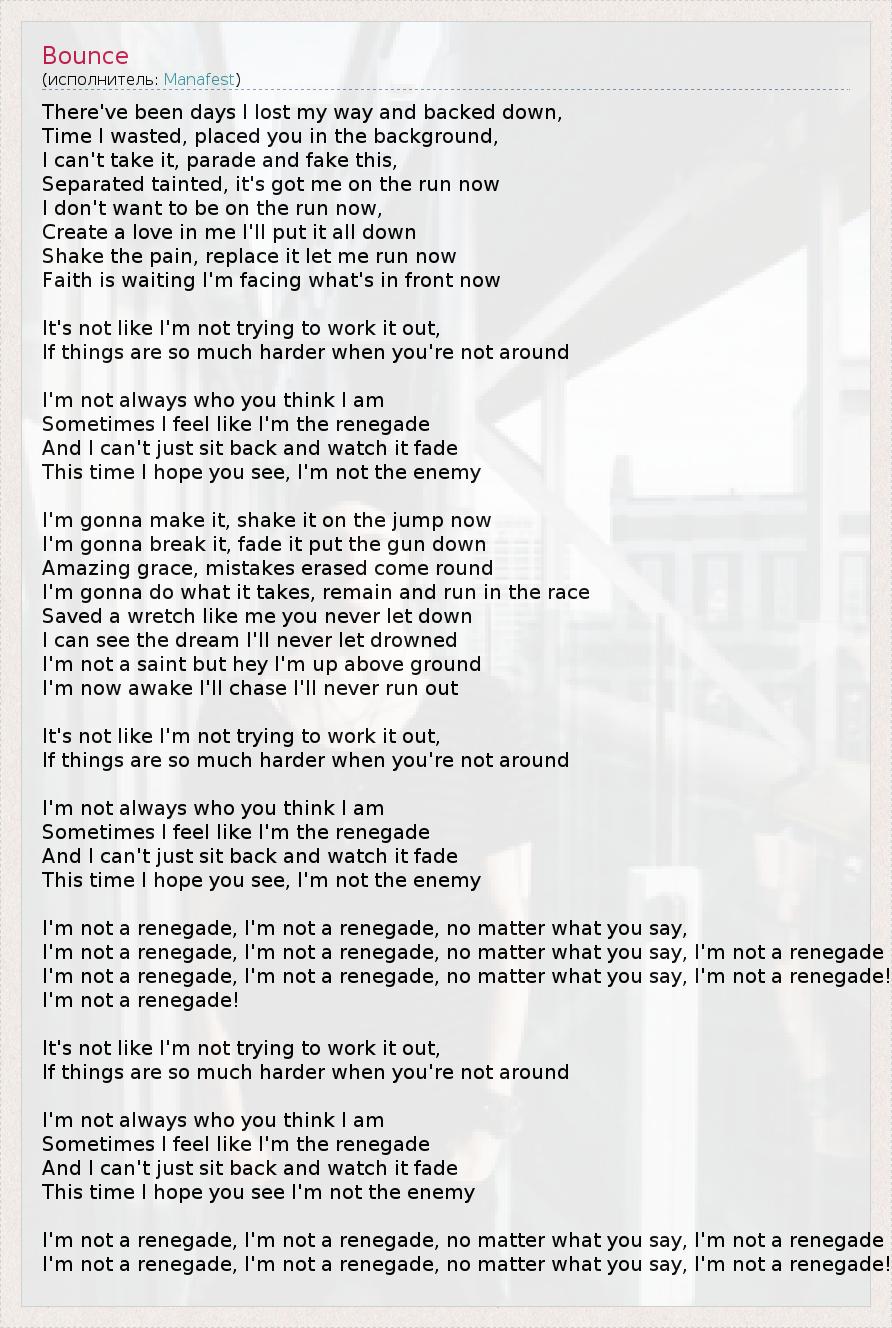 I'm not a renegade, I'm not a renegade, no matter what you say, I'm not a renegade!