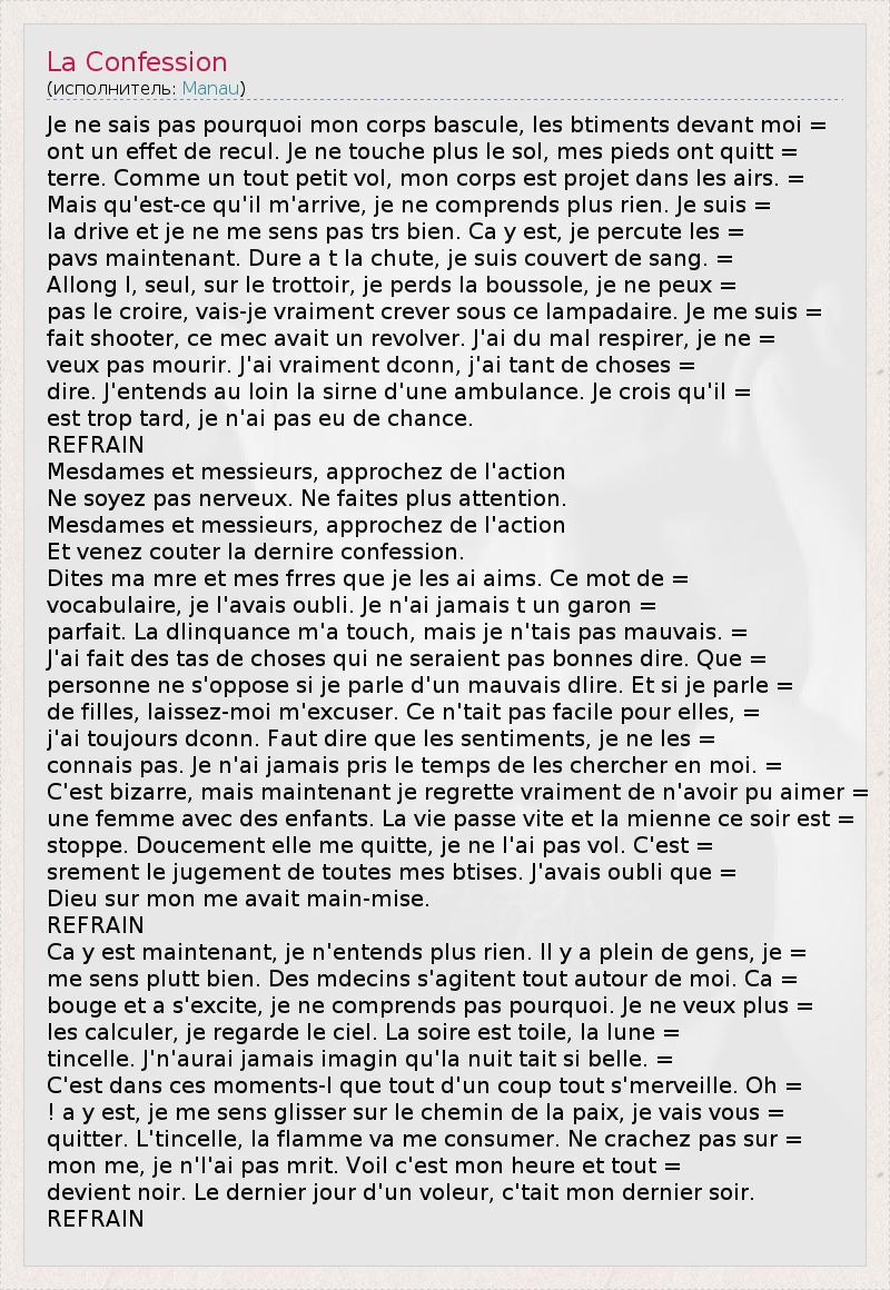 А как ты думаешь, о чем песня "La Confession" ?