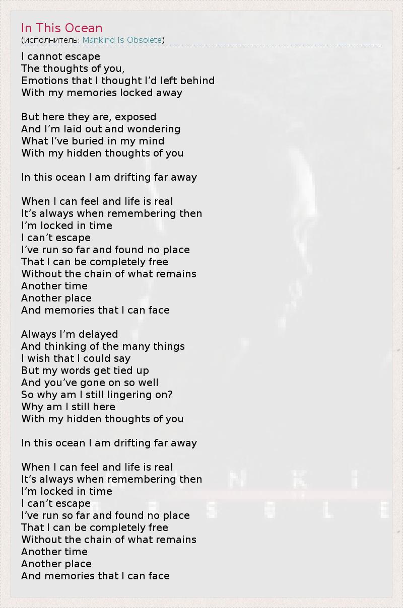 А как ты думаешь, о чем песня "In This Ocean" ?