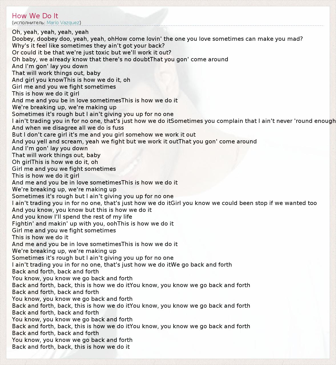 Back and forth, back, this is how we do itYou know, you know we go back and forth