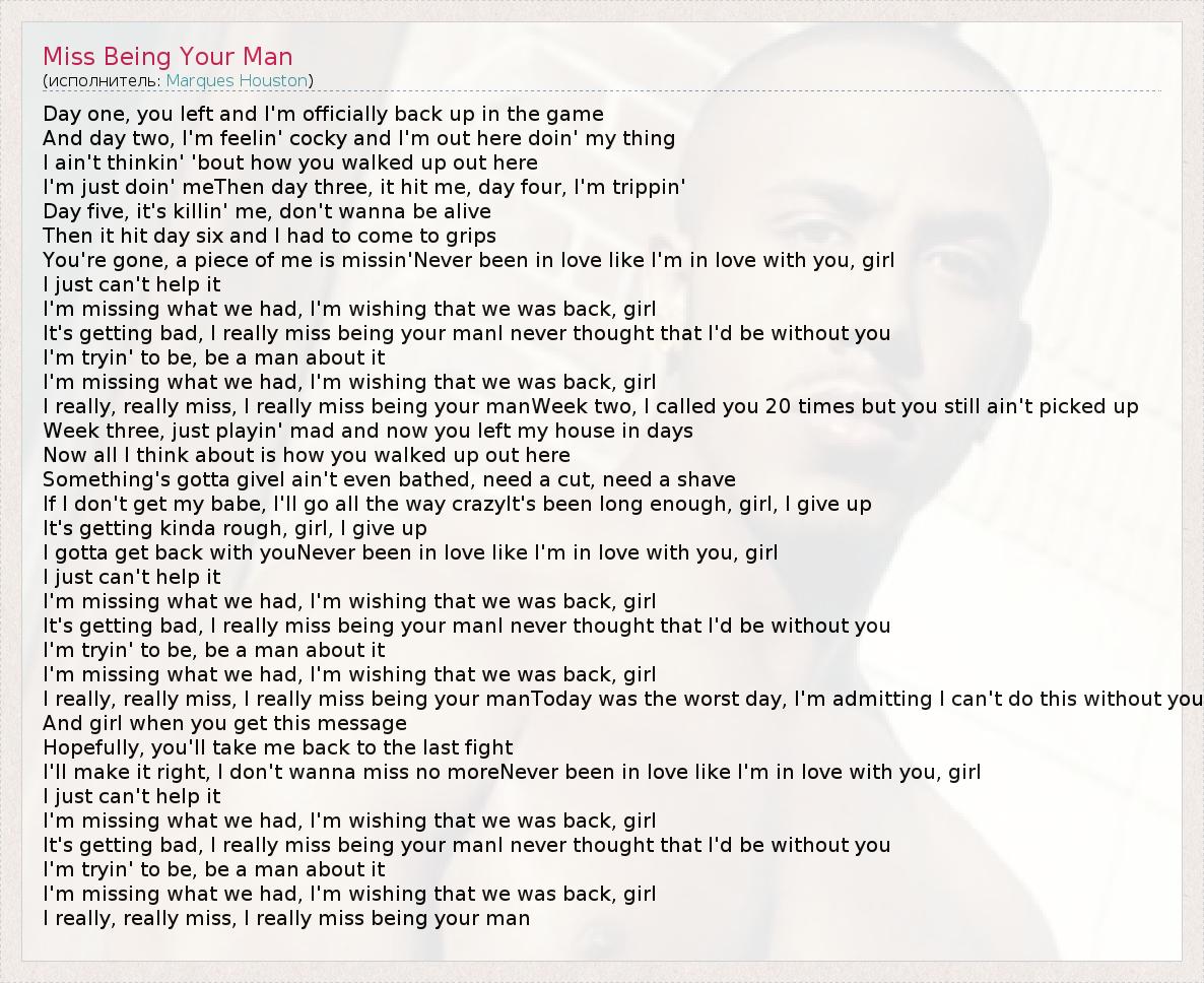 I really, really miss, I really miss being your manWeek two, I called you 20 times but you still ain't picked up