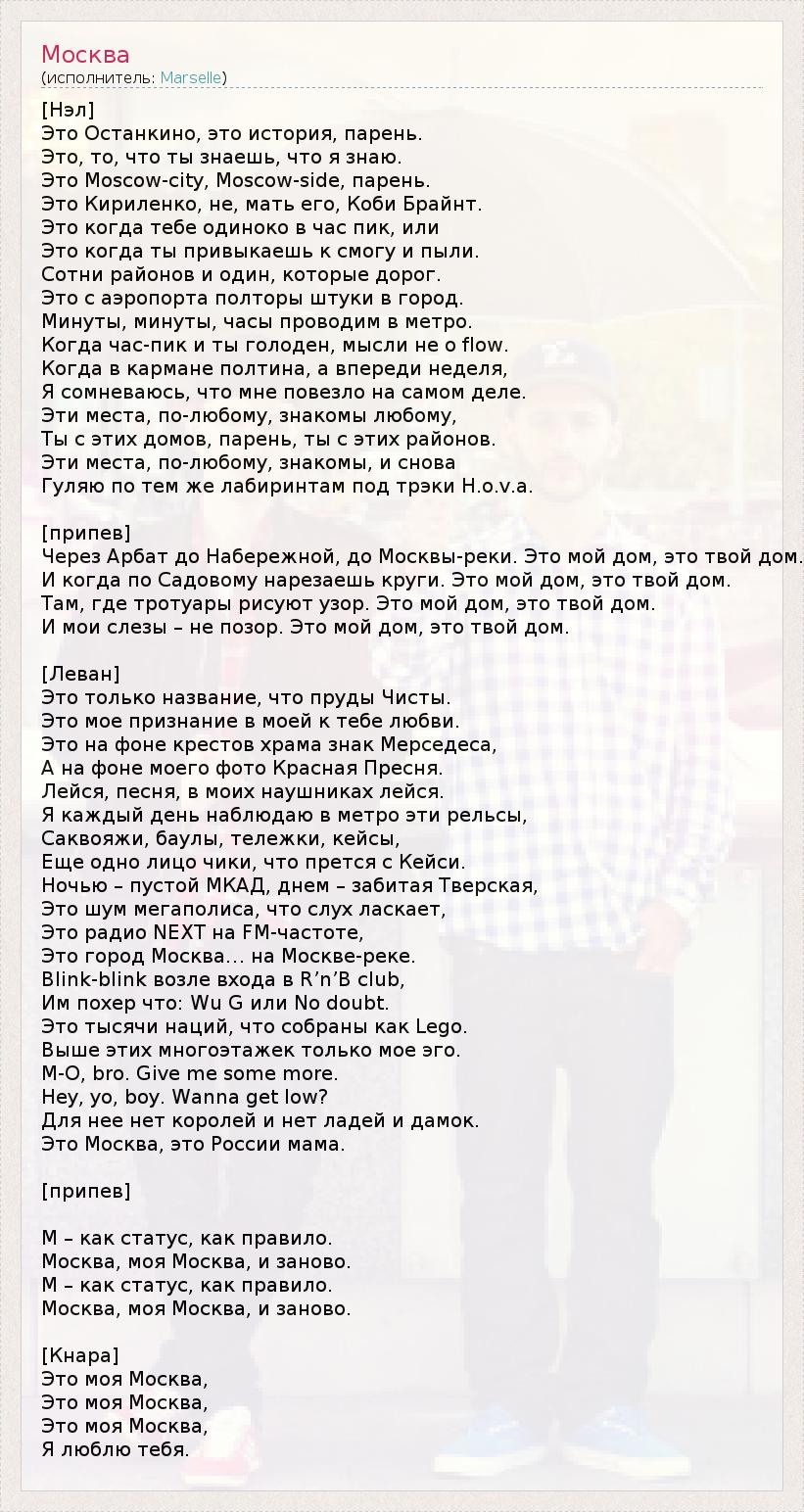 Это интересно:Группа Marselle (Марсель) – Nel и Mc Levan aka L’One, за свое недолгое существование успела завоевать внушительное количество слушателей. Выпустив первый сингл «Москва» с альбома «MARS» группа взорвала жизнь столицы. На радиостанции Next Fm трек занимал первое место в хит-параде и продержался... продолжение