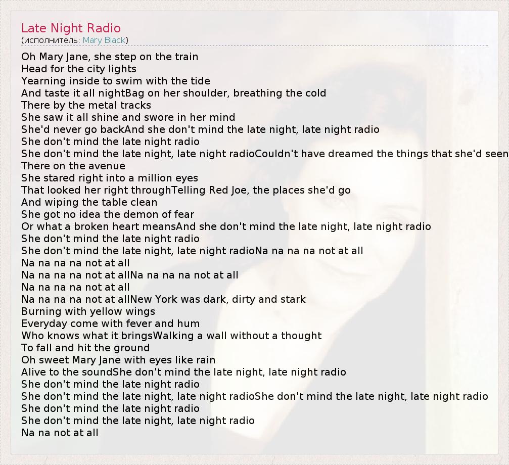 А как ты думаешь, о чем песня "Late Night Radio" ?