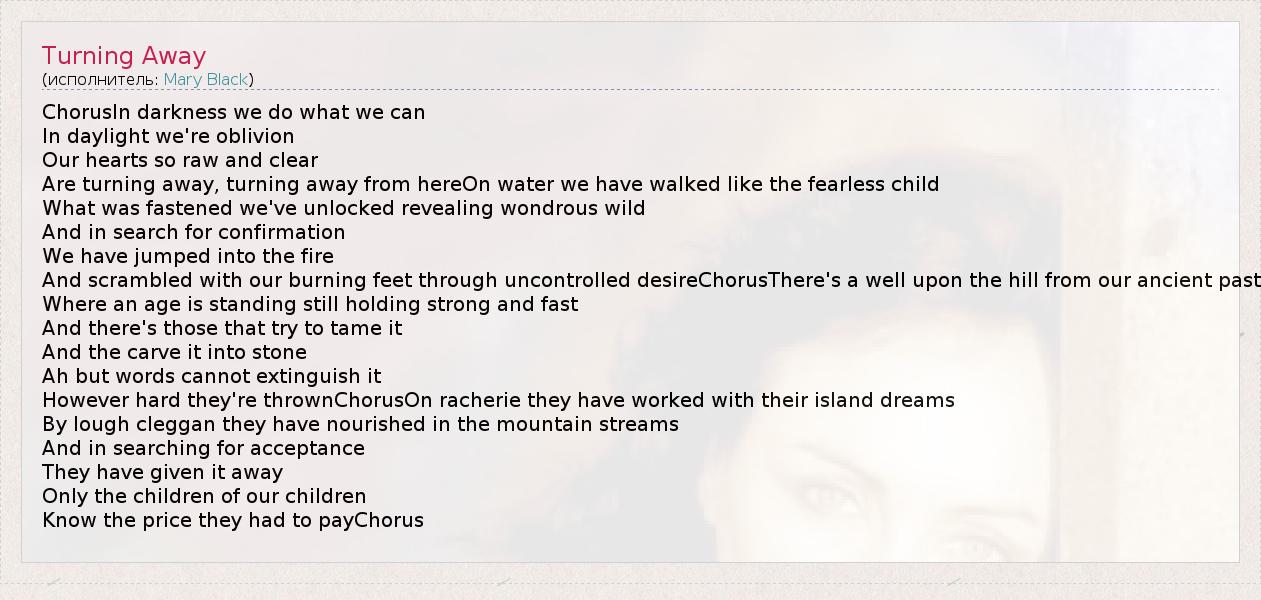Are turning away, turning away from hereOn water we have walked like the fearless child