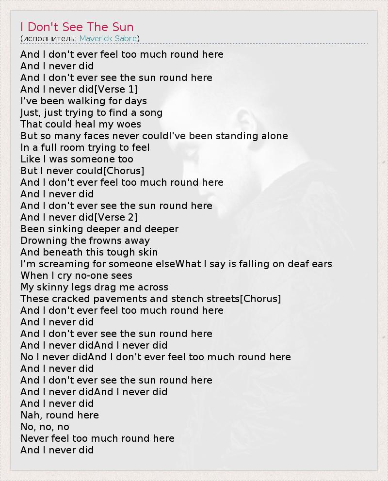 А как ты думаешь, о чем песня "I Don't See The Sun" ?