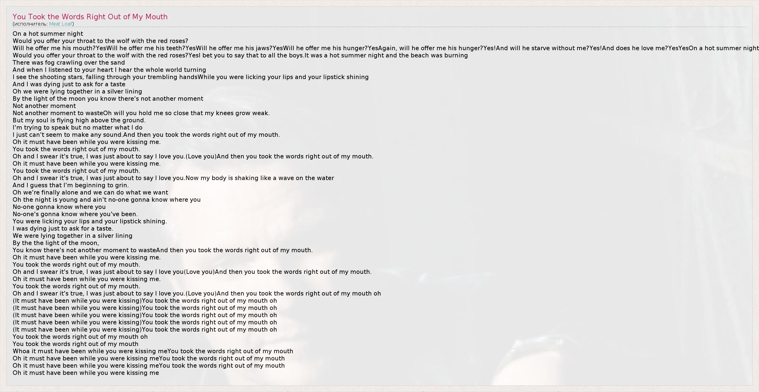 ГлавнаяИсполнителиMeat LoafYou Took the Words Right Out of My Mouth