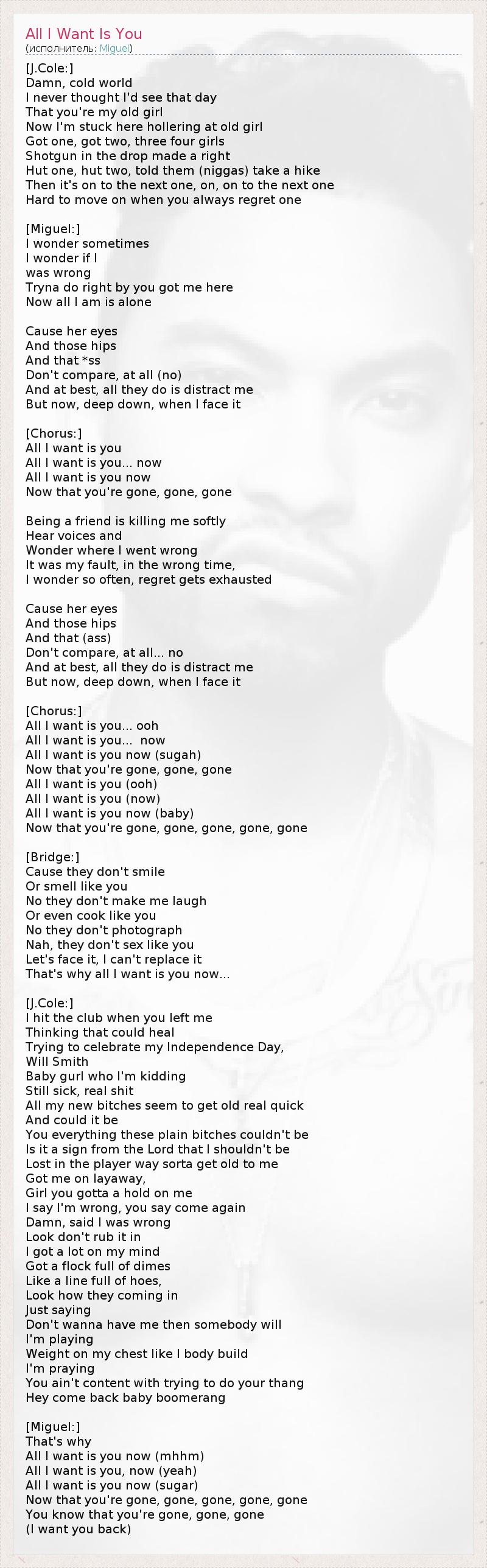 А как ты думаешь, о чем песня "All I Want Is You" ?