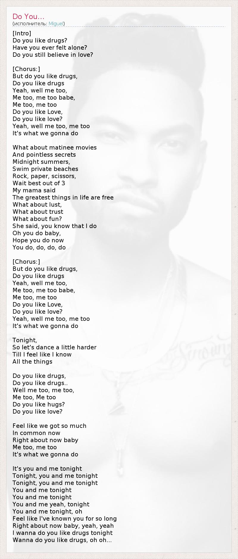 Это интересно:Миге́ль Хонтель Пиментель (Miguel Jontel Pimentel; 23 октября 1986, Лос-Анджелес) — американский певец, автор песен и музыкальный продюсер, выступающий под мононимом Миге́ль.Пиментель родился и вырос в Лос-Анджелесе в смешанном браке мексиканца и афроамериканки, которые развелись, когда мальчику было восемь лет. В раннем возрасте он приобщился к музыке, звучавшей в родительском доме: его мать... продолжение