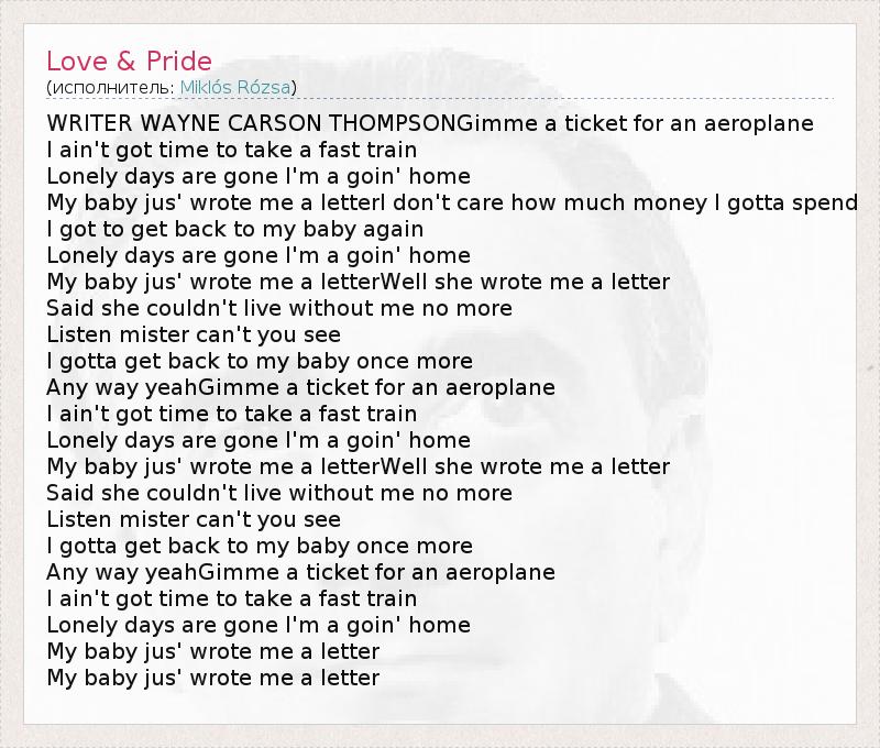 WRITER WAYNE CARSON THOMPSONGimme a ticket for an aeroplane