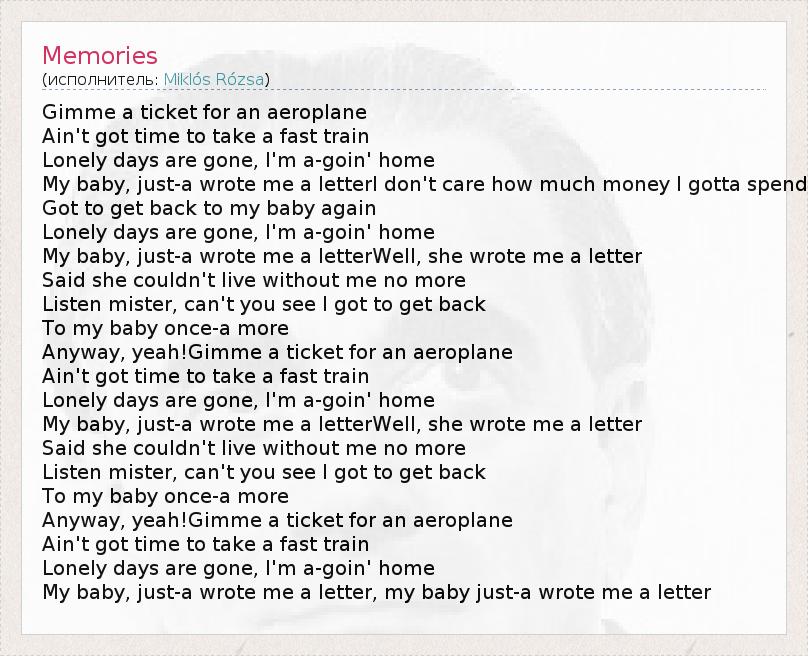 Anyway, yeah!Gimme a ticket for an aeroplane
