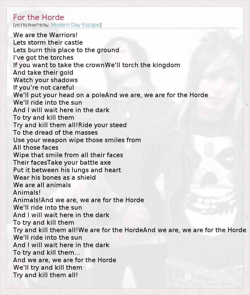 Try and kill them all!We are for the HordeAnd we are, we are for the Horde
