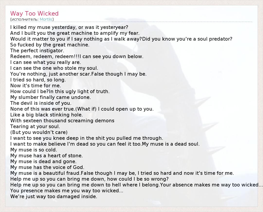 А как ты думаешь, о чем песня "Way Too Wicked" ?