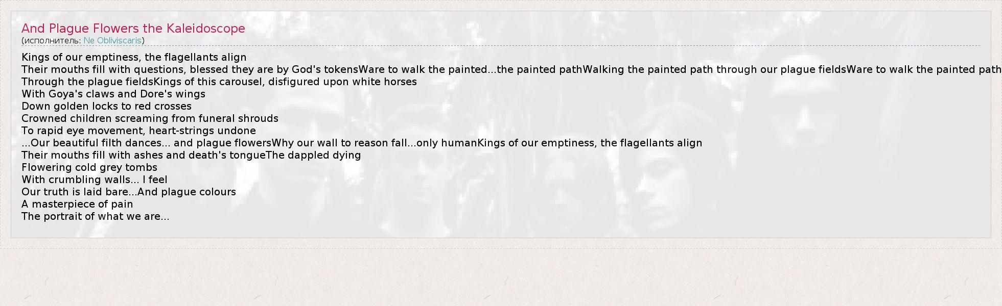 ГлавнаяИсполнителиNe ObliviscarisAnd Plague Flowers the Kaleidoscope