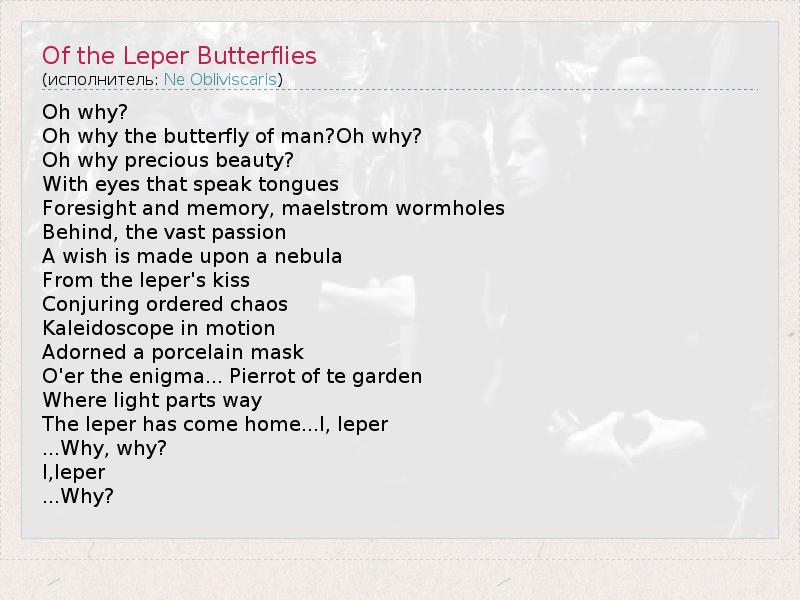 А как ты думаешь, о чем песня "Of the Leper Butterflies" ?