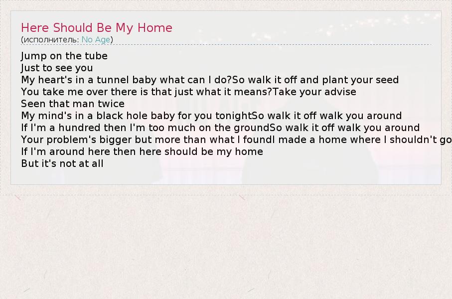 ГлавнаяИсполнителиNo AgeHere Should Be My Home