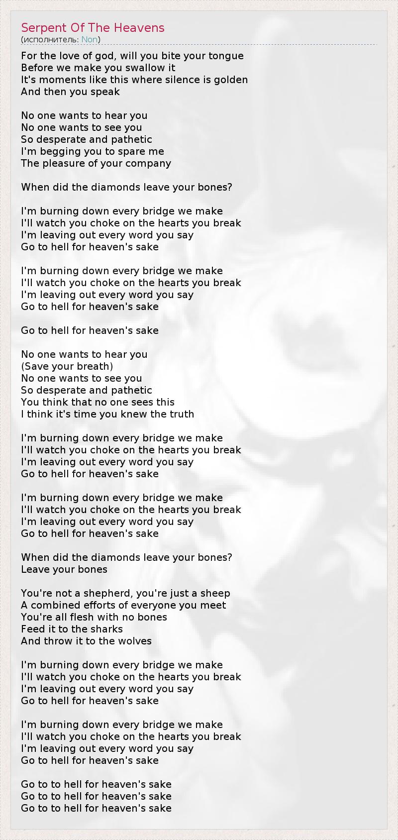 А как ты думаешь, о чем песня "Serpent Of The Heavens" ?
