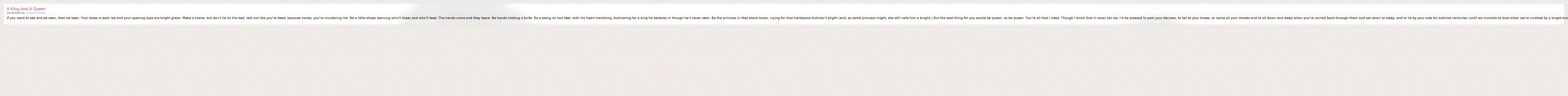 А как ты думаешь, о чем песня "A King And A Queen" ?