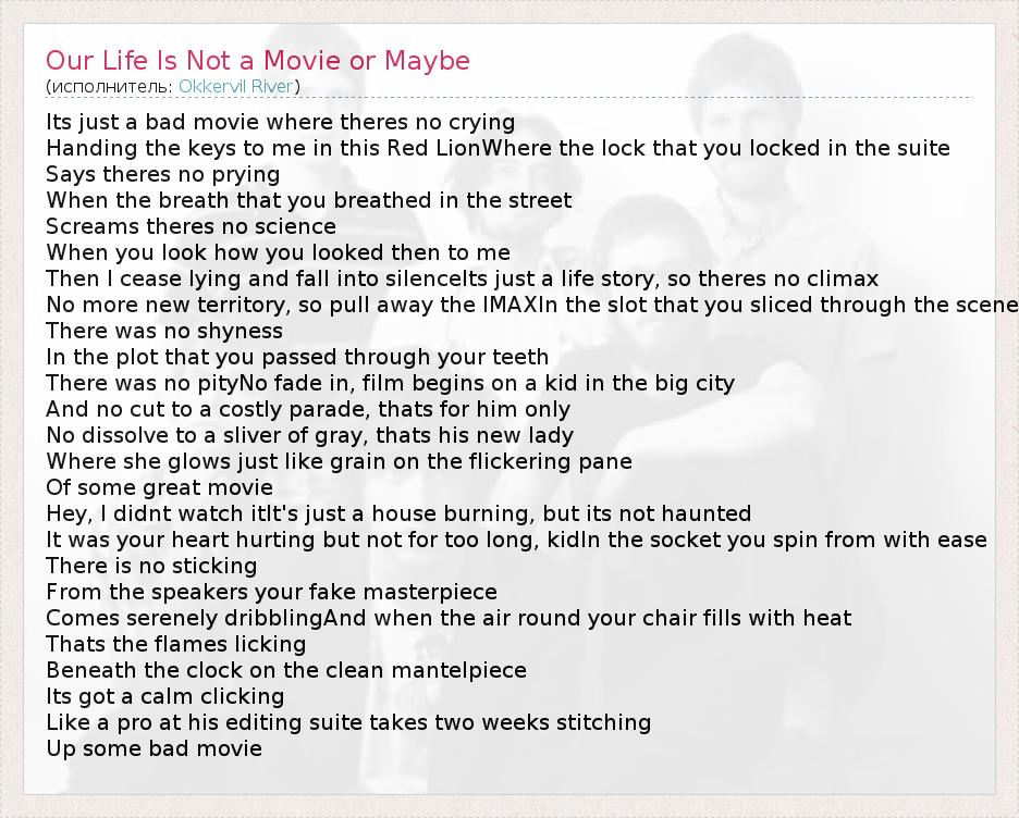 А как ты думаешь, о чем песня "Our Life Is Not a Movie or Maybe" ?