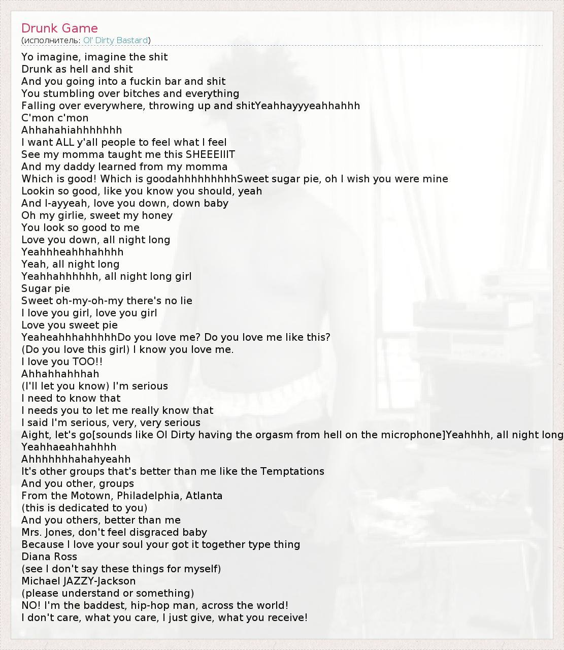 А как ты думаешь, о чем песня "Drunk Game" ?