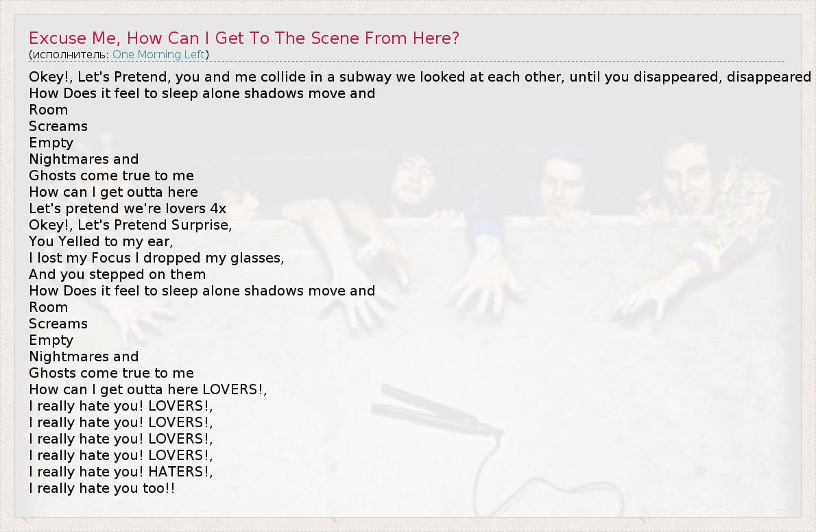 А как ты думаешь, о чем песня "Excuse Me, How Can I Get To The Scene From Here?" ?