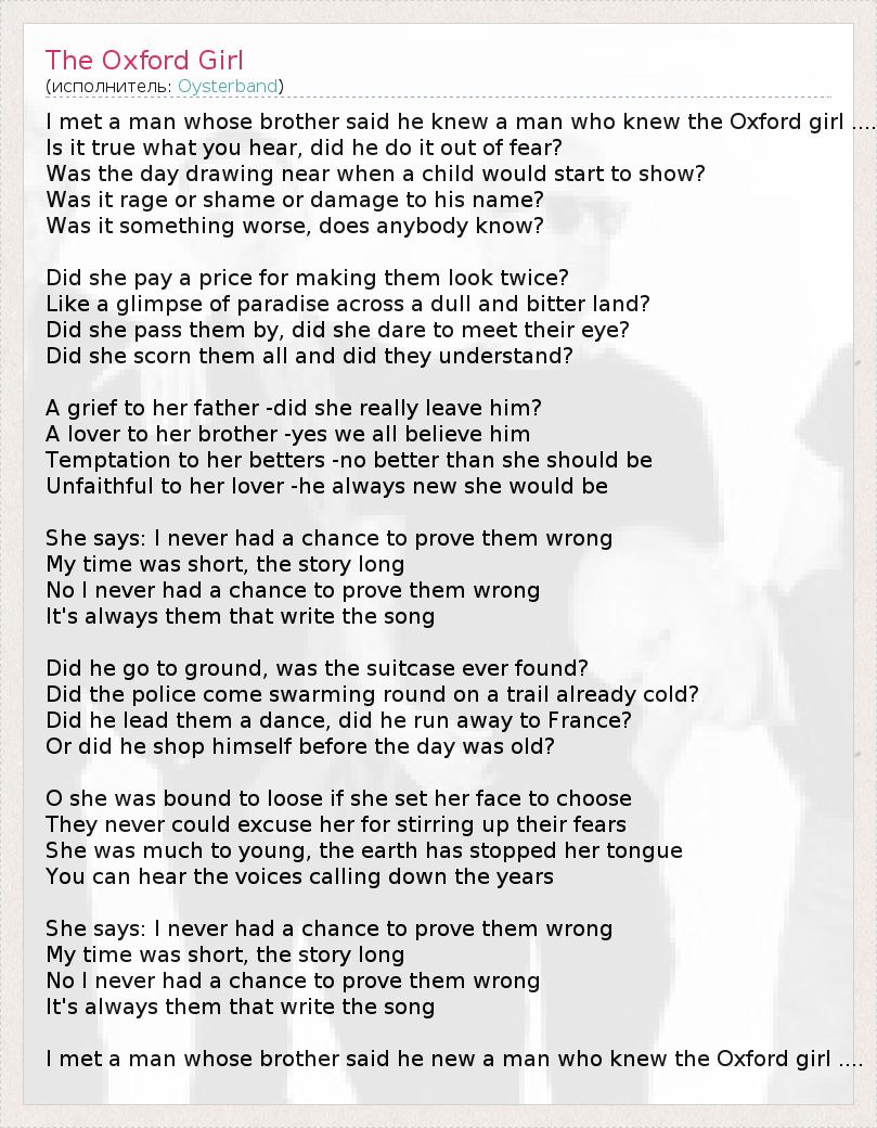 А как ты думаешь, о чем песня "The Oxford Girl" ?