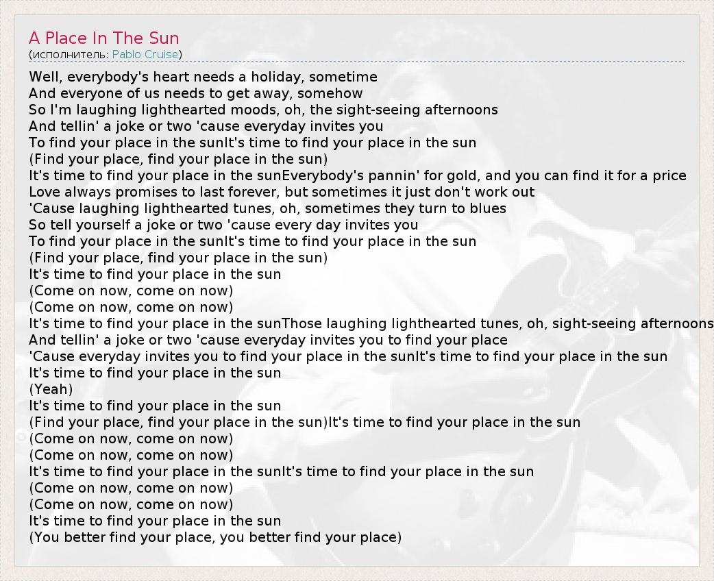 А как ты думаешь, о чем песня "A Place In The Sun" ?