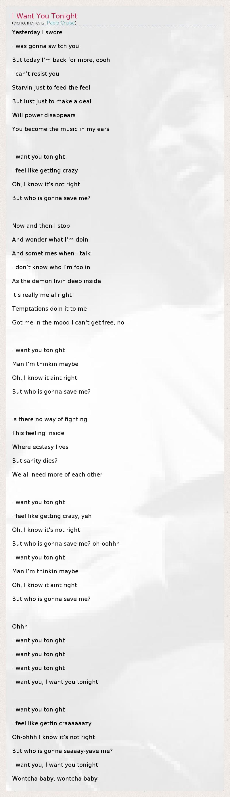 А как ты думаешь, о чем песня "I Want You Tonight" ?